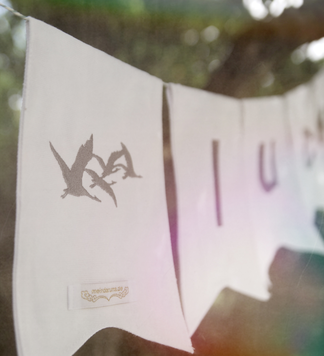 Wenn du diese Wimpelgirlande gerne mit anders farbigen Stickereien hättest, schreibe uns einfach eine Nachricht mit deiner Wunsch-Farbe. Dann realisieren wir sie für dich. Den Stoff der Wimpel können wir dir leider nicht in einer anderen Farbe anbieten.