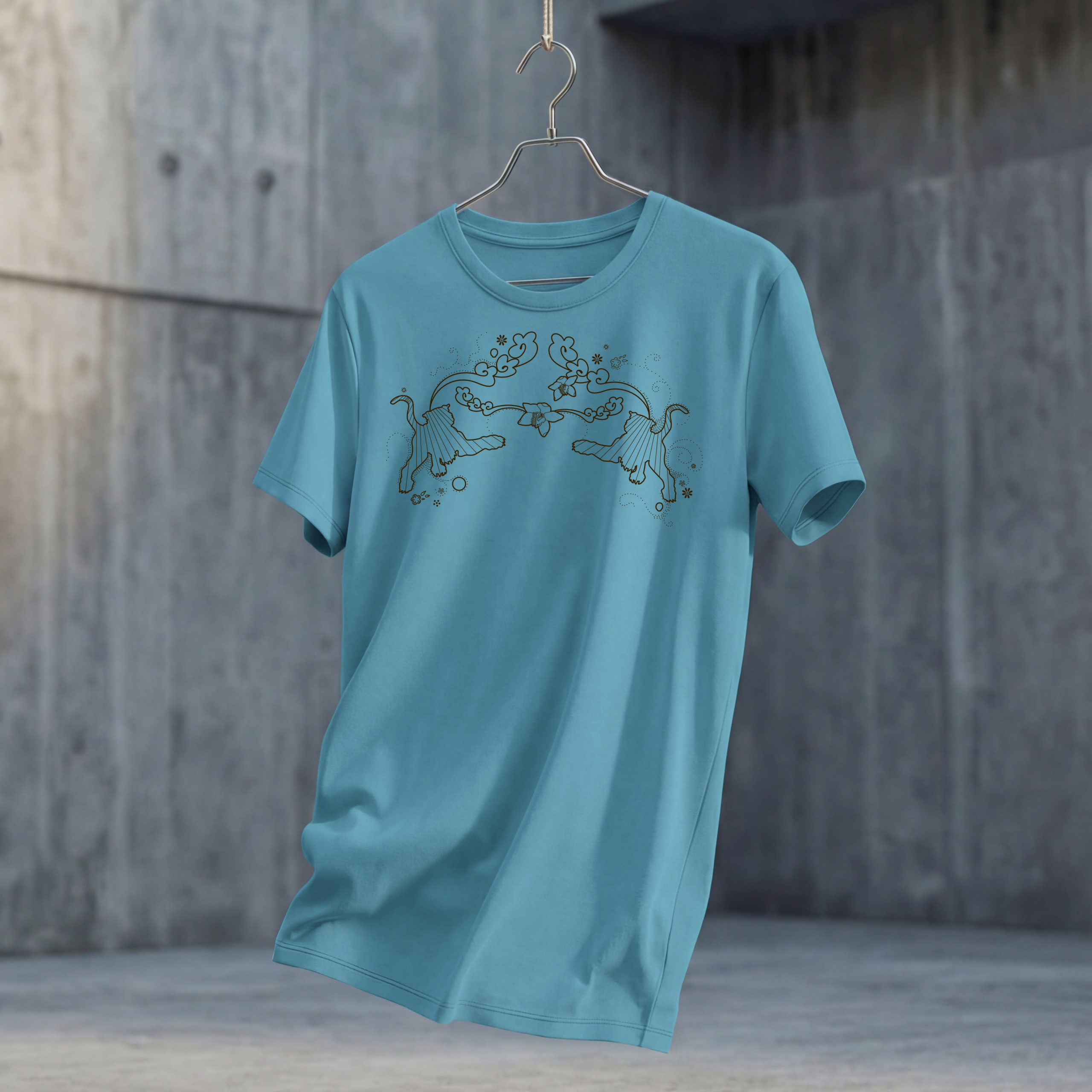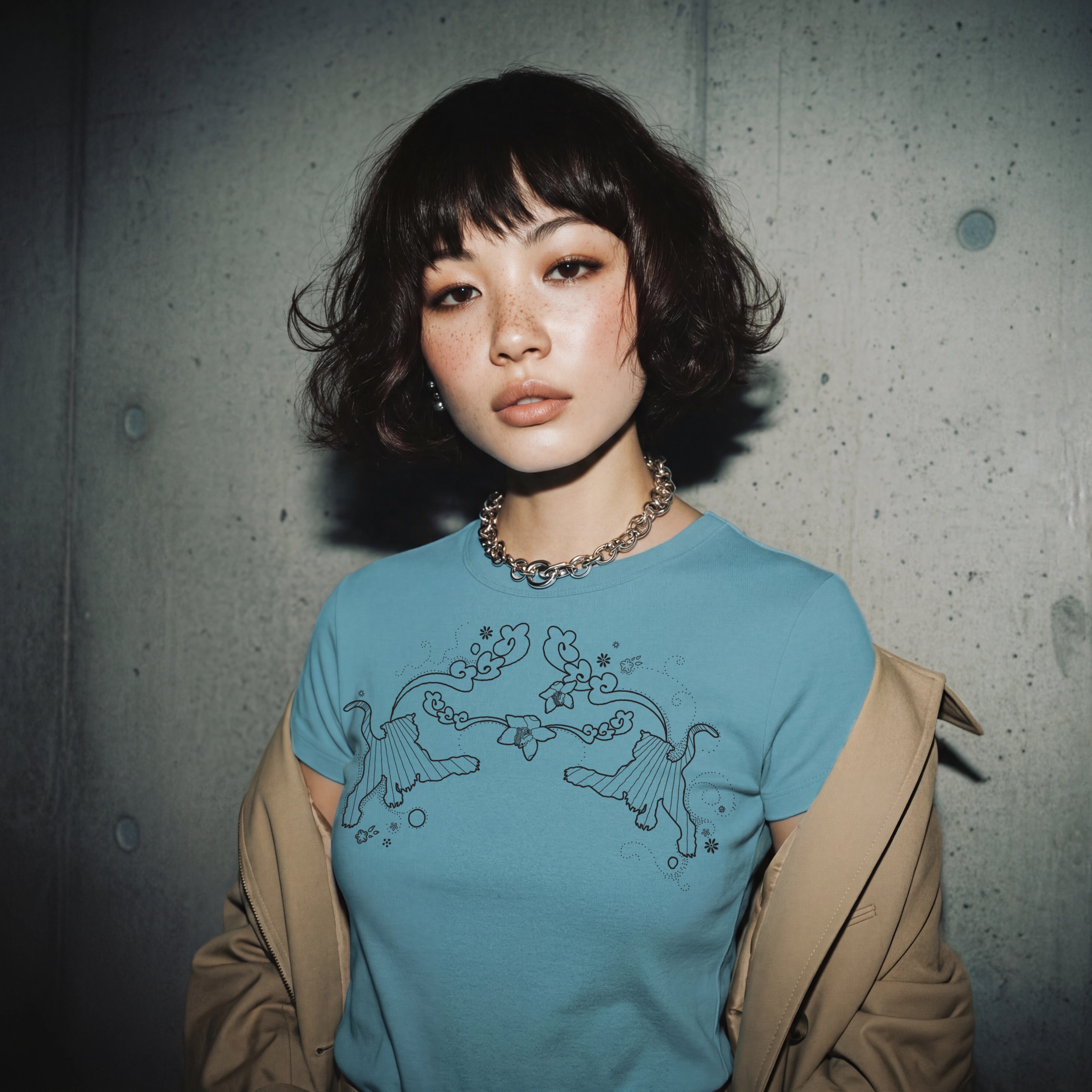 Das hellblaue Tiger-Shirt bringt frischen Wind in jeden Look – sanft, modern und doch ausdrucksstark.